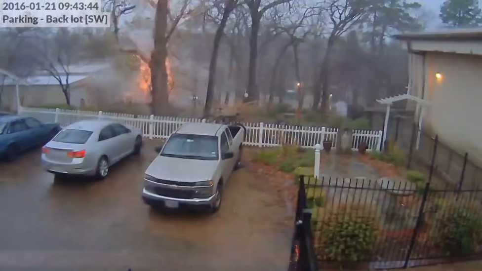 В штате Техас неподалеку от католической школы 21 января 2016 года молния ударила в дерево, превратив его в груду щепок.