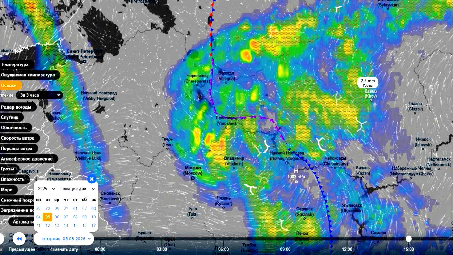Южный циклон принесет на ЕТР сильные дожди. Прогноз погоды с 4 по 5 августа