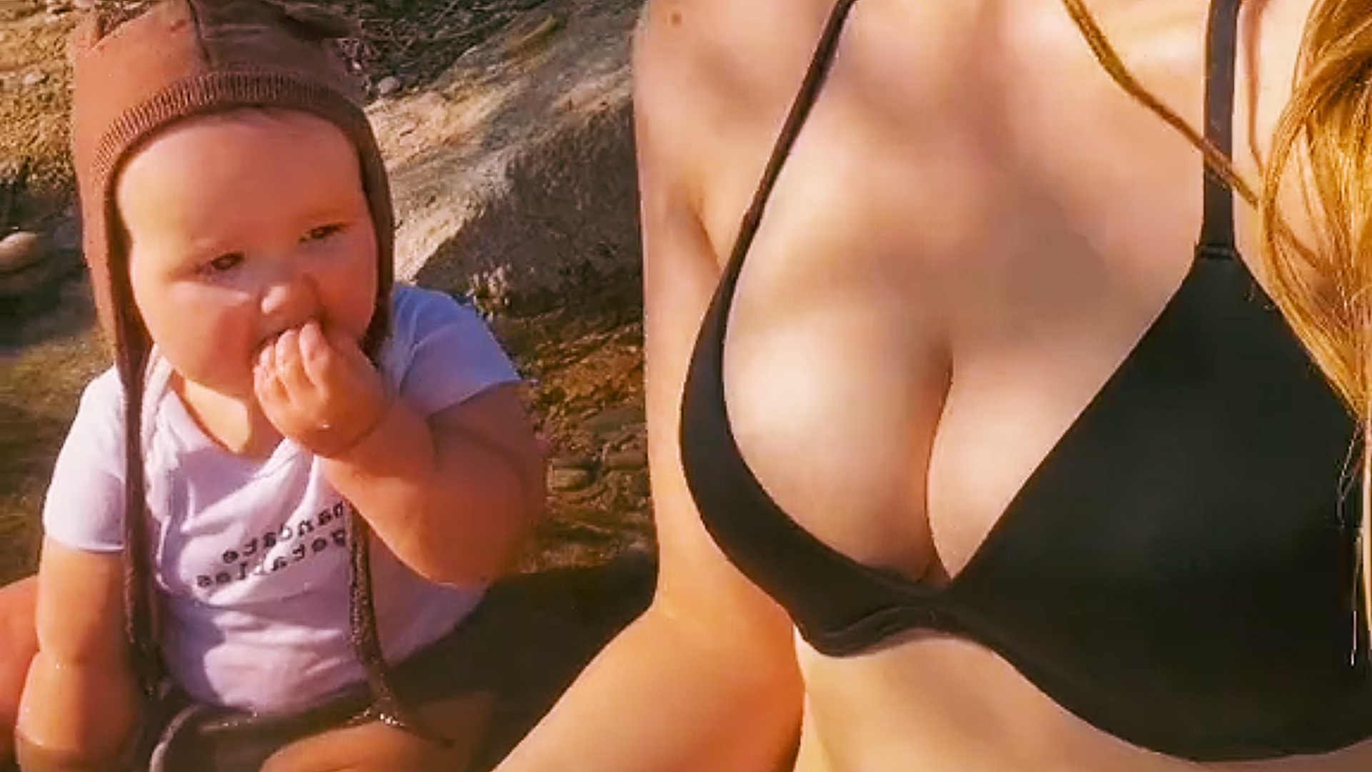 Ребенок веганки ест песок и камни.mp4