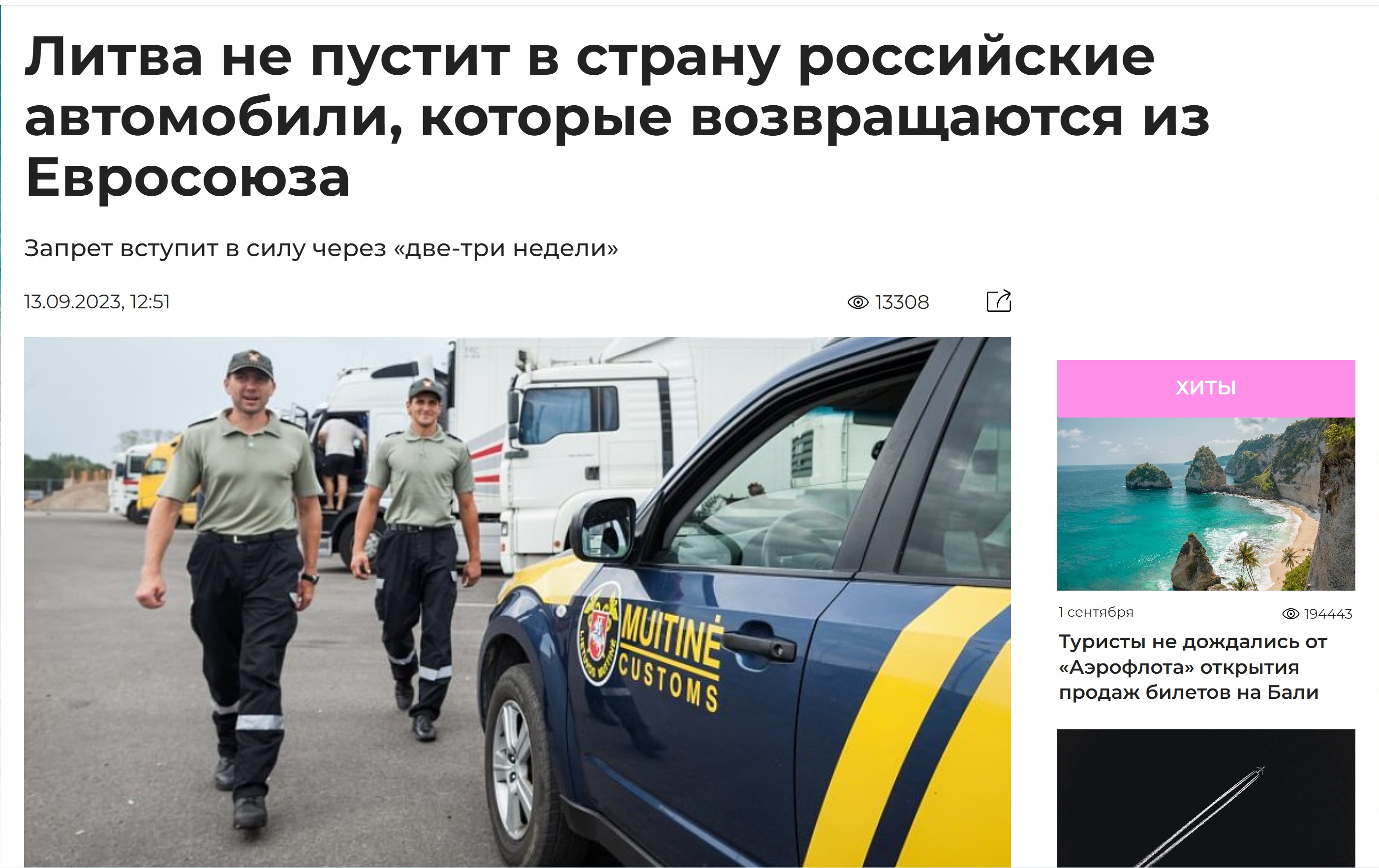 Новости туризма 13/09/2023 Литва не пустит в страну российские автомобили которые возвращаются из ЕС