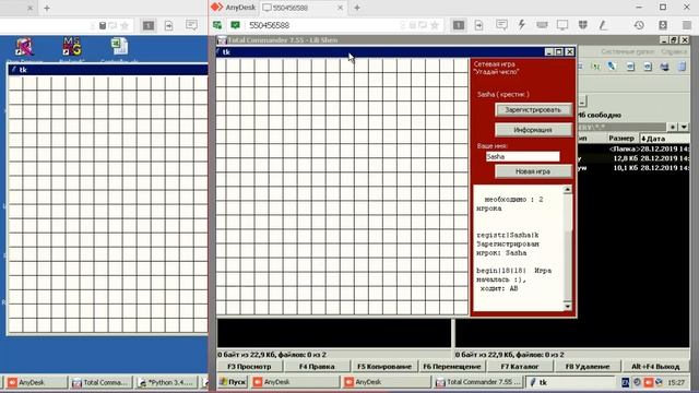 Игра продемонстрирована в реальной локальной сети. Показаны процессы регистрации и игры. Отработаны случай ошибочных ходов и неправильной очередности кода. Для реального использования внесены мелкие изменения в исходники клиента и сервера.