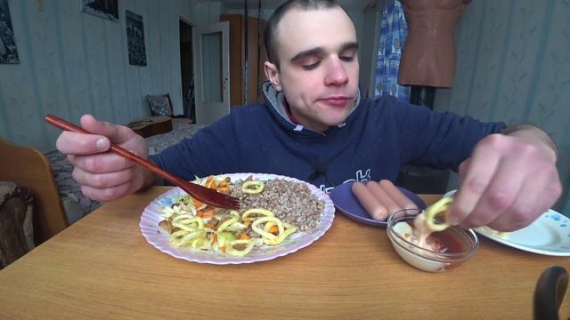 МУКБАНГ АСМР НАРЕЗКИ ЛУЧШЕЕ - СОСИСКИ / ГРЕЧКА / САЛАТ / СОУС / ASMR Mukbang 22. 02. 2023