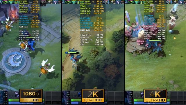 Dota 2 | 1080p vs 1440p vs 2160p | RTX 4080 | i9 13900K | 64GB RAM | 1TB NVMe
