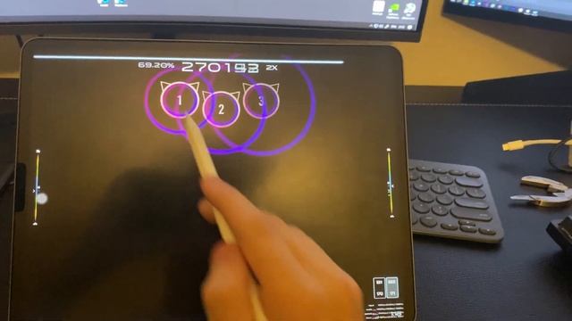 it's really hard to play while recording! Tutorial: https://www.youtube.com/watch?v=-safHky8FFQ done with a USB-C to USB-A cable, SideLoadly, iTunes and some effort. IPA used: https://www.mediafire.com/file/2w3t9z594vmh3bl/osu.ipa/file It's not tested for any viruses, use at your own risk!