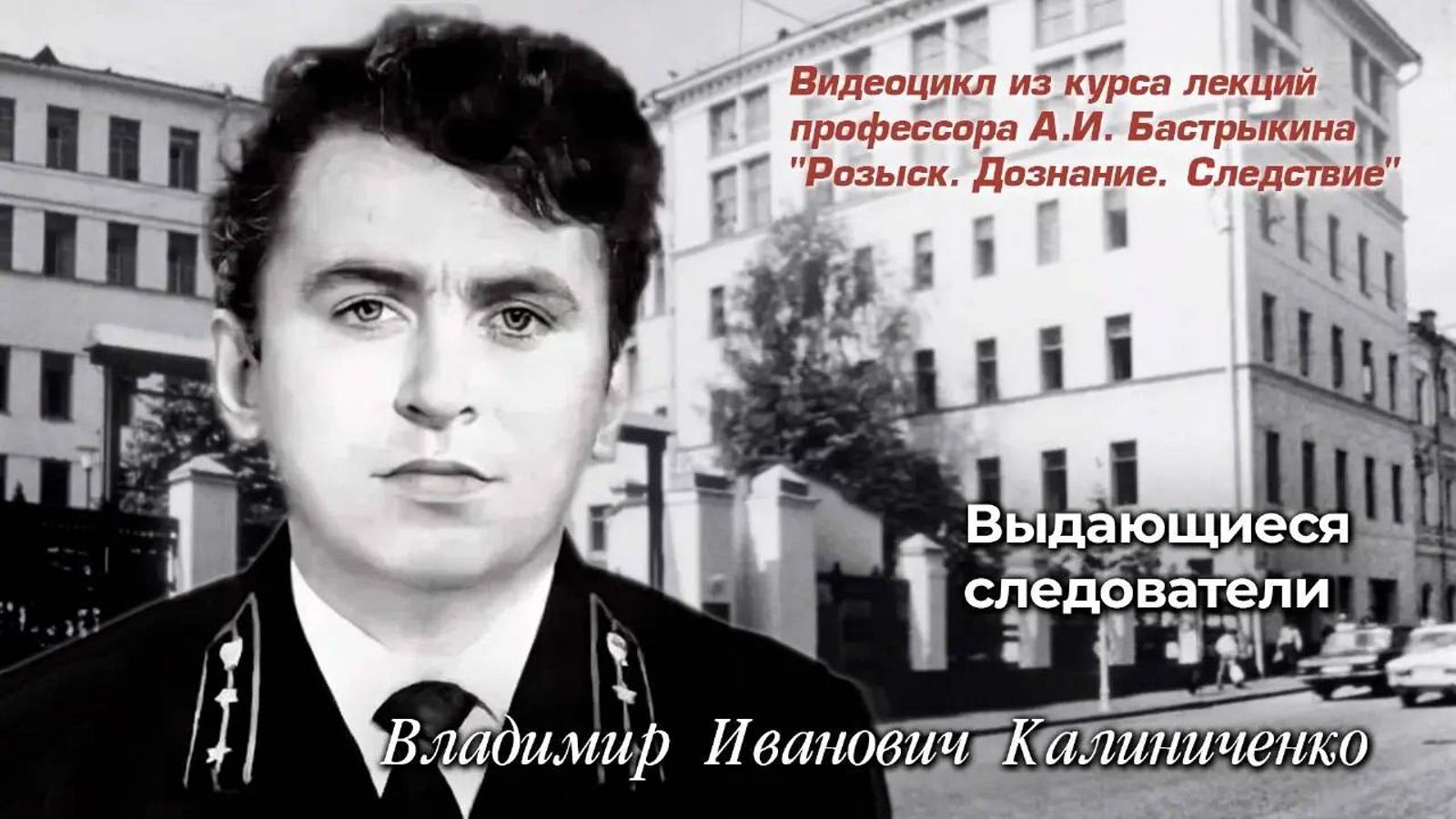 Владимир Иванович Калиниченко — выдающийся следователь по особо важным делам при Генеральном прокуроре СССР. Его имя внушало трепет даже самым влиятельным коррупционерам и мошенникам, имеющим обширные связи. Они осознавали, что если за дело берётся Владимир Калиниченко, то ни взятки, ни подкуп не помогут. Подробнее - в видео из элективного курса лекций профессора А.И. Бастрыкина "Розыск. Дознание. Следствие". #АИБастрыкин #АлександрБастрыкин #Бастрыкин #БастрыкинПрофессор #БастрыкинЛекции #ИсторияСледствия #ВыдающиесяСледователи #КалиниченкоВИ