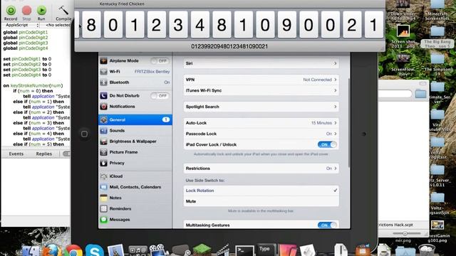 This is a tutorial about cracking a restrictions code on your iDevice. Apple Script: http://www.mediafire.com/download/2wcaxzvx7ma69h8/Restrictions_Hack.scpt