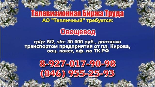 Вакансии и телефоны прямых работодателей в специализированной программе по трудоустройству "Телевизионная Биржа Труда" - г.САМАРА, г.ТОЛЬЯТТИ т/к РЕН-ТВ