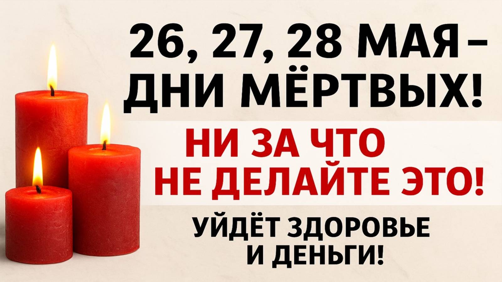 С 26 по 28 мая наступают самые опасные дни в году — дни мёртвых, когда активизируются потусторонние силы, открываются порталы между мирами, и малейшая ошибка может забрать здоровье, деньги, удачу и мир в доме. В это видео собрано всё самое важное: 🔹 Что НЕЛЬЗЯ делать 26, 27, 28 мая 🔹 Приметы, обряды, сильные ритуалы защиты от беды 🔹 Почему нельзя отдавать деньги, посуду, соль, расчёску, одежду 🔹 Что делать со старыми вещами, волосами, найденными предметами 🔹 Как очистить дом и не впустить зло 🔹 Почему НЕЛЬЗЯ плакать, ругаться и брать чужие деньги 📿 Эти даты несут мощную энергетику предков и открывают проход для сил, которые могут вмешаться в вашу судьбу. Важно знать, как вести себя правильно, чтобы не впустить негатив, сглаз, порчу или родовое проклятие. Это не страшилки, а реальные народные советы и сильные обряды, проверенные веками. Каждый день несёт свой запрет, свою примету и свой ключ к защите от беды. 💬 В конце видео — обряд с солью и огнём на очищение и защиту дома. Не пропустите ни секунды — это может спасти вашу энергию, финансы и здоровье. 🎯 Смотрите до конца, чтобы узнать: — как закрыть энергетические дыры в доме — какие 3 вещи обязательно нужно сжечь — почему 1 ошибка на кухне запускает чёрную полосу — какие действия притянут врагов и нищету 📌 Поставьте лайк, если хотите, чтобы в вашем доме остались только достаток, здоровье и защита. Поделитесь с близкими и напишите в комментарии: «Я защищаю свой дом от беды. Пусть будет свет и мир!» Эти слова работают, если вы сказали их от души.