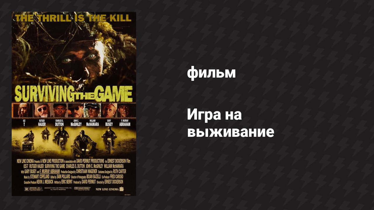 Джек Бентон — бывший заключённый, который пытается начать новую жизнь, оставив своё криминальное прошлое позади. Однако его спокойствие длится недолго: влиятельный бизнесмен Майлс предлагает ему работу, но вместо этого затягивает Джека в опасную игру. Теперь он становится мишенью для группы безжалостных охотников, для которых люди — всего лишь добыча. Оказавшись в дикой местности без оружия и поддержки, Джек вынужден использовать все свои навыки и инстинкты, чтобы выжить и переломить ход событий. Он превращается из жертвы в охотника, ведя беспощадную борьбу против своих преследователей. Фильм полон динамики и напряжения, рассказывая о решимости человека выстоять в неравной схватке и вернуть себе свободу. Год выпуска: 1994 Жанр: боевик, триллер, приключения Продолжительность: 95 мин Режиссёр: Эрнест Р. Дикерсон В ролях: Айс-Ти, Рутгер Хауэр, Чарльз С. Даттон, Гэри Бьюзи, Джон К. МакГинли, Ф. Мюррей Абрахам Страна: США Студия: New Line Cinema Здесь вы можете посмотреть фильм Игра на выживание в русском синхронном переводе в хорошем качестве (4k, 2k, Full HD, 1080p) совершенно бесплатно.