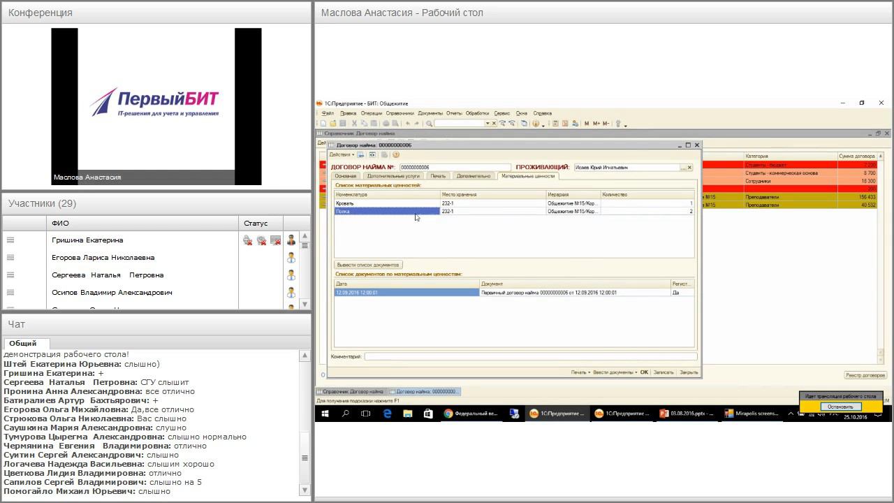 В ПРОГРАММЕ: 1) Сложности ведения учёта проживающих в общежитии и их решение. 2) Планирование работы общежития на базе решения БИТ.Общежитие: •Номерной фонд общежития. Гибкость структуры; •Учёт проживающих в общежитии (поступление, перемещение, выезд проживающего); •Учёт лиц, дополнительно проживающих на жилплощади совместно с лицом, заключившим договор с общежитием; •Учёт наличия свободных койко-мест и их характеристик; •Новое планирование заселения проживающих на период: резерв и снятие с резерва; •Расчёт и контроль осуществления оплаты за проживание и предоставление дополнительных услуг; •Учет материальных ценностей в общежитии; •Формирование отчетов по численности проживающих и дополнительно проживающих, взаиморасчетам и задолженности проживающих, наличию свободных койко-мест, материальным средствам. 3) Практика внедрения «БИТ.Общежитие», результаты (на реальных примерах). 4) Возможности интеграции «БИТ.Общежитие» с другими программными продуктами.