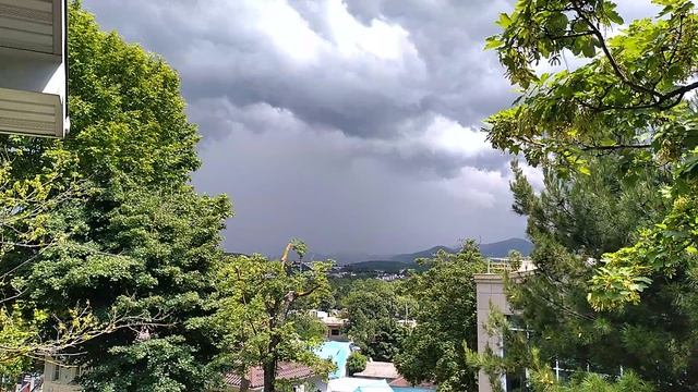 Надвигается огромная штормовая туча, гора за горой скрывается в ней на Чёрном море