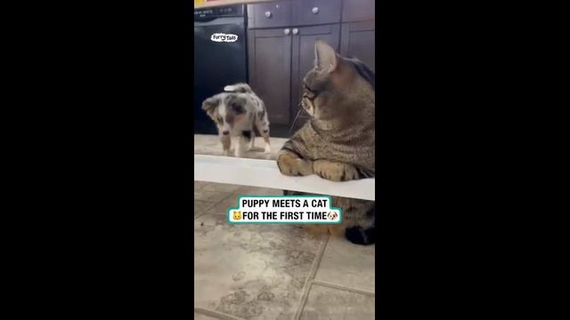 Щенок встречает кота впервый раз - 2024 год