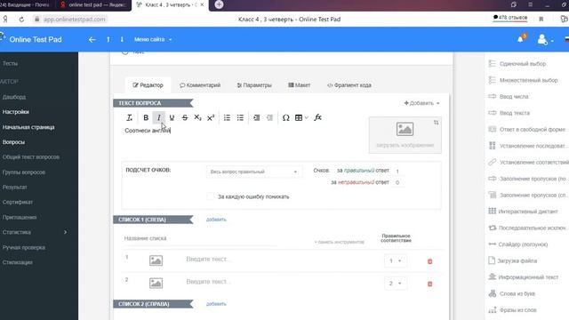 КОНСТРУКТОР ТЕСТОВ Online Test Pad Корболина Н. А. МАОУ СОШ №191