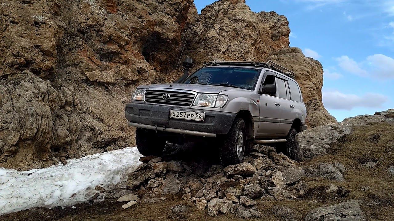 Снег в ложбине на дороге, поэтому объезжаем экстремально между камней и через большой валун. Мостили камнями переезд.