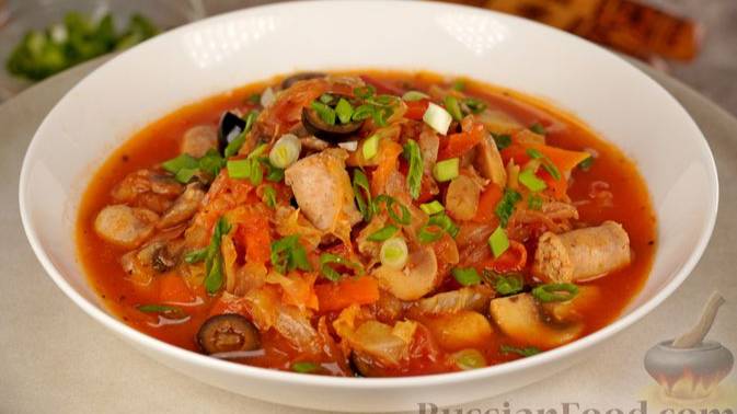 Тушёная капуста с богатым вкусом. СОЛЯНКА С КОЛБАСКАМИ И ГРИБАМИ