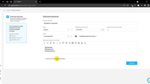 3. Создание вакансии