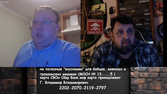 на полезные "вкусняшки" для бойцов, военных и гражданских медиков (МОСН № 13......5 ) : карта СВОи Сбер Банк мир карта принадлежит Г.Владимир Владимирович 2202 2070 2119 2797 карта ПСБ Банк МИР. карта принадлежит Г.Владимир Владимирович 2200 0303 1063 9290 карта ВТБ Банк МИР Г. Владимир Владимирович 2200 2402 3812 9130 карта Тинькофф принадлежит сыну Г. Никита Владимирович 5536 9100 2609 9012 QWI PAY-PAL WEB MANY- www.donationalerts.com/r/drujinnik Спасибо Яндекс. Дзен zen.yandex.ru/id_drujinnik ВК "Дружинник Бдительный" vk.com/id736176766 Телега t.me/yadrujinnik www.donationalerts.com/r/drujinnik
