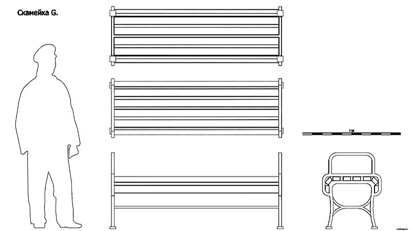 Скамейка G. Чертёж. Usual Bench G. Drawings.