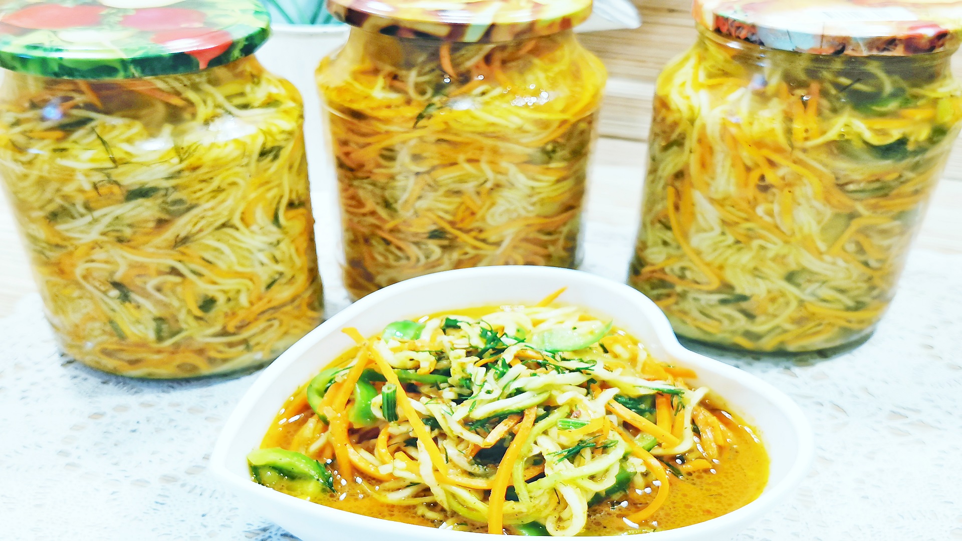 Предлагаю вам приготовить сегодня со мной самый вкусный салата "КАБАЧКИ ПО - КОРЕЙСКИ НА ЗИМУ". Зимой открыть баночку такой закуски и наслаждение вам обеспечено, гарантирую вам - потому что готовлю данный салат не один год и рекомендую приготовить его и вам. ♥♥ Спасибо за Like и Подписку на мой канал ♥♥ КАНАЛ: https://www.youtube.com/c/ЕленаМудрен... ? НАПИШИТЕ МНЕ ВАШИ ВОПРОСЫ В КОММЕНТАРИИ ? ❗❗❗ ВЫ МОЖЕТЕ АКТИВИРОВАТЬ СУБТИТРЫ И ПЕРЕВОД НА СВОЕМ ЯЗЫКЕ⚠️ Щелкните текст [cc] в правом верхнем углу и три точки в правом верхнем углу видео, затем нажмите СУБТИТРЫ и выберете свой язык.Так вы сможете смотреть видео НА СВОЕМ ЯЗЫКЕ.⚠️ ✅ Если вам понравился рецепт, пишите комментарии,ставьте лайк и не забывайте подписаться, если еще не подписаны. Впереди много интересных рецептов! ⚠️ Нажимайте на колокольчик ?,чтобы получать уведомления! ? -------------------------------------------------- -------------------------------------------------- ?Так вкусно "Хрустящие" огурцы я мариную не первый год. https://youtu.be/y7B6zYA6k-E КОНФИТЮР из кабачков с лимоном и апельсином! https://youtu.be/ijFUwFHambI ?Маринованные помидоры? "В СНЕГУ" https://youtu.be/HhRHvRlpung ??Острая АДЖИКА на зиму из кабачков. https://youtu.be/6S_HeXusDzg ??️Аджика "КОБРА".? Острее только меч самурая https://youtu.be/oyIwqS5FEz4 Как?? сделать Малосольные огурцы. Мой любимый рецепт быстрых малосольных хрустящих огурчиков. https://youtu.be/8i9MUuS8M_0 ✅РЕЦЕПТ. ?САМЫЙ ВКУСНЫЙ РЕЦЕПТ САЛАТА "КАБАЧКИ ПО - КОРЕЙСКИ НА ЗИМУ" Кабачки - 2,5 кг Морковь - 0,5 кг Сладкий перец - 3 шт. Огурец - 3 шт. средние Растительное масло - 150 мл. Уксус 9% - 150 мл. Чеснок - 2 головки средние Острый красный перец чили - 1 ч.л. ( на свое усмотрение) Черный молотый перец - 2 ч.л. Молотый кориандр - 3 ч.л. Соль - 3 ст.л. не с горкой Сахар - 150 гр. Зелень. Хэштеги: #кабачки_на_зиму #кабачки_по_корейски #заготовки_на_зиму #вкусный_рецепт #простые_заготовки #простой_рецепт_кабачков #рецепт_из_кабачков #как_приготовить_кабачки #быстрый_рецепт #острые_кабачки #как_приготовить #семейный_рецепт #простой_рецепт_консервации #что_приготовить_на_зиму #готовим_вкусно #кулинария #Елена_Мудреная_Кулинария #что_приготовить_из_кабачков #чем_накормить_семью #заготовки_из_кабачков_на_зиму #кабачки_на_закуску #рецепт_вкусных_кабачков #заготовки_на_зиму #салат_на_зиму #вкусно_просто_и_доступно #рецепты #салат #салаты #консервации_на_зиму