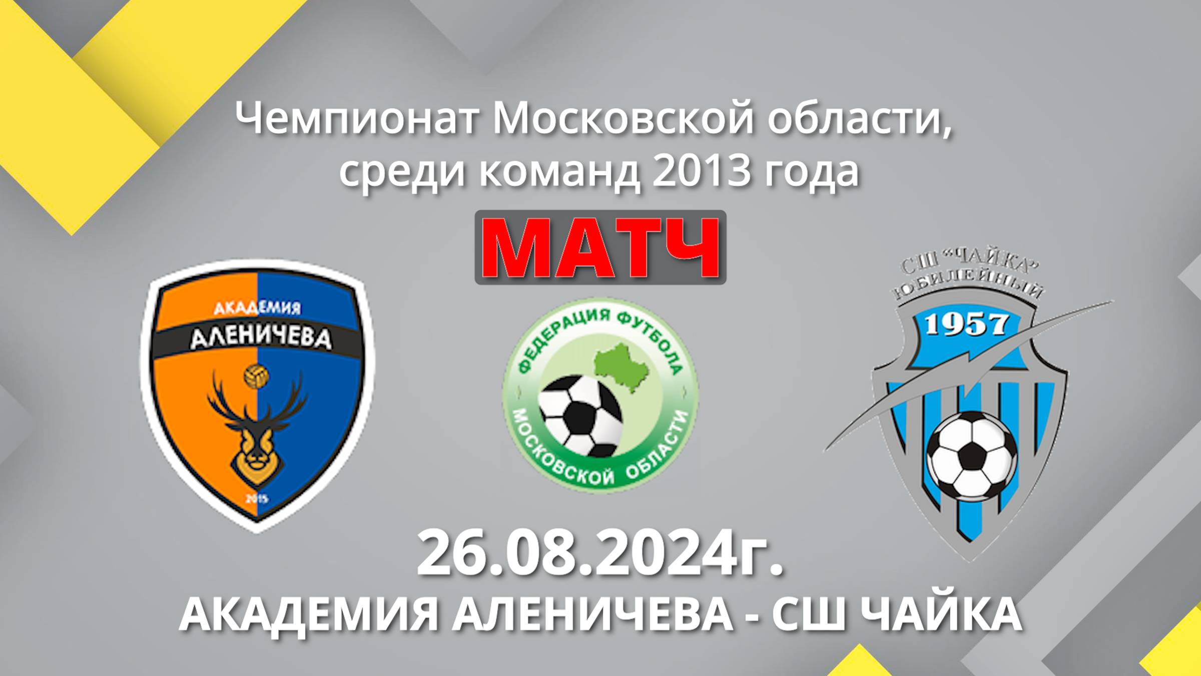 Академия Аленичева - СШ Чайка 26.08.2024 г. Матч!!! Межмуниципальные соревнования Московской области среди детских команд 2013 г.р. (до 12 лет)