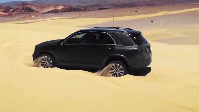 Судя по кадрам, новейший GLE (W167), оборудованный пневмоподвеской, сможет подпрыгивать, таким образом помогая «закопавшейся» машине самостоятельно выбраться из песчаной ловушки. Умеет ли автомобиль подпрыгивать при движении вперёд, не сообщается.