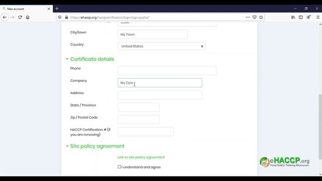 How to Register a New User on eHACCP.org, online HACCP Training