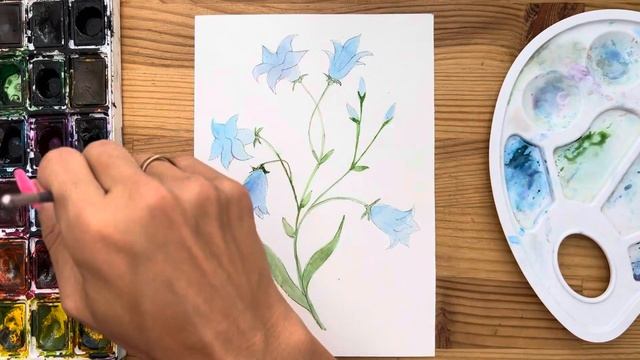 Как нарисовать колокольчик карандашом и акварелью начинающим | Рисунок поэтапно и легко для детей