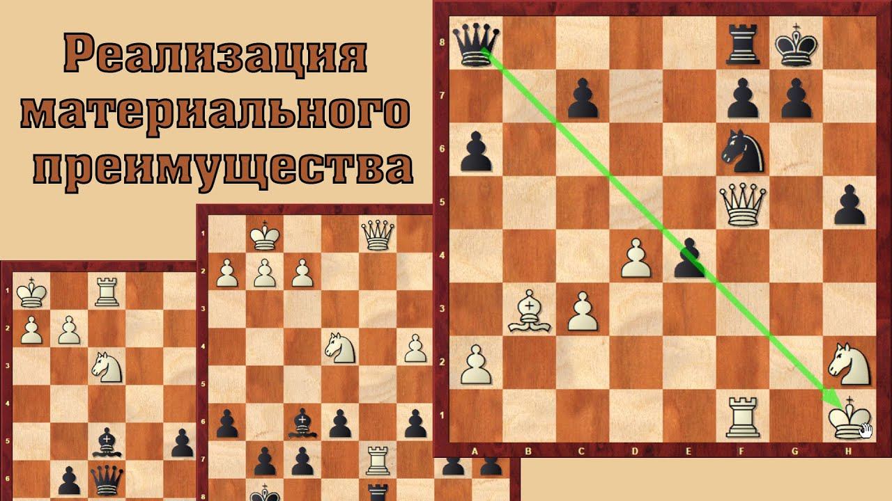 Очень часто многие любители шахмат сталкиваются с такой проблемой, как реализация материального преимущества. Т.е. вы уже умеете атаковать, умеете проводить комбинации, что-то посчитать, и получив материальный перевес, у вас начинаются проблемы. Вы не знаете, как его реализовать. И вместо выигрыша, даже часто терпите поражения, причем какие-то нелепые, когда кажется, что проиграть невозможно. На этом уроке поговорим, как реализовывать материальное преимущество, что нужно делать. И это все покажем на трех примерах.