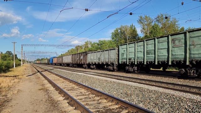 спарка 2ЭС6-689+941 с грузовым поездом | Воденяпинский