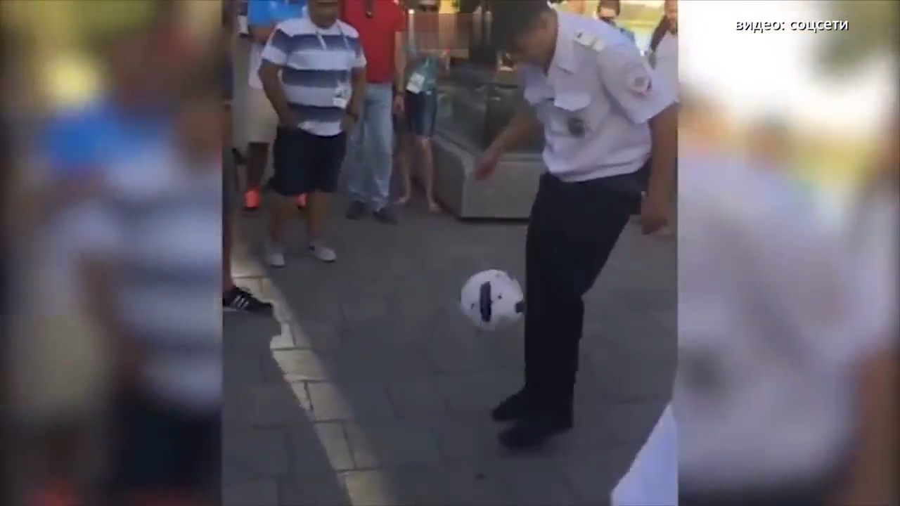 Полицейский удивил фанатов в чеканке мяча