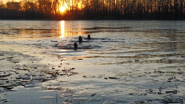 заплыв в проруби на закате Смирновы и Серая Наталья. Моржи столицы 6.12.2020