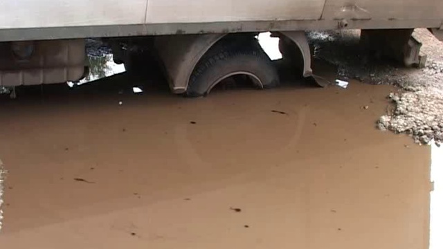 В минувшую пятницу на улице Братьев Васнецовых грузовой автомобиль стал заложником асфальта. Мария Цылёва