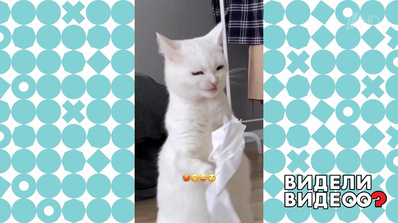 Кошка попыталась съесть салфетку. Видели видео? Фрагмент выпуска от 05.07.2020
