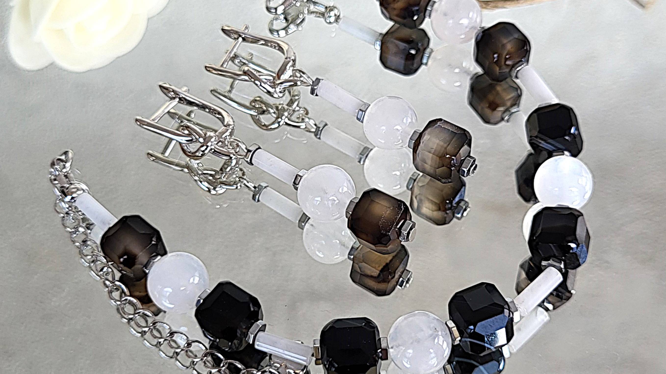 Комплект из агата, лунного камня