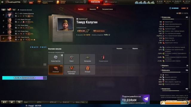 Донат https://www.donationalerts.com/r/crazylfoxy Отправить мем на стрим https://memealerts.com/crazyfoxy Спонсорство на Бусти(фото,видео и др) https://boosty.to/crazylfoxy Альтернативный донат https://donatepay.ru/don/305522 Сбер 5469 5500 1768 3134 ❕Социальные сети: ▶VkPlay Live https://vkplay.live/crazylfoxy ▶Тик-ток https://www.tiktok.com/@crazyllfoxy?lang=ru-RU ▶Трово https://trovo.live/CrazyFoxy ▶Группа vk https://vk.com/crazylfoxy ▶Дискорд сервер https://discord.gg/Tj8EK8W ▶Телеграм-канал + чат https://t.me/crazy_secrets ======================================================= Обо мне Зовут Настя, живу в Питере. Играю не вау, но чуть выше среднего(53%), имеется об.260 и об.279(р), люблю ст, лт и пт. Заказать танк(кроме арты)-200 руб, арта - 300 руб. Взвод - 500 руб/бой. ======================================================= ❗ПРАВИЛА ЧАТА❗ В чате ведем себя адекватно: - нет советам(как играть, как жить и тд) - нет мату - нет КАПСу(большие буквы) - нет рекламе и самопиару - нет спаму - нет политике - религию и ориентацию не обсуждаем ======================================================= Мои озвучки ▶Для Tanks Blitz https://www.youtube.com/watch?v=uOIQRmELMGc ▶Для Мир Танков https://www.youtube.com/watch?v=_rrxlvBk_JU ▶Сайт Протанки(раздел озвучки) https://protanki.tv/mods/ozvuchka-ekipazha-ot-crazy-foxy-dlia-world-of-tank ✨Команды для Бота: !привет, !пк, !дискорд, !лайк, !бомбит, !стата, !совет,!чат, !рак, !твич, !фокси, !озвучка, !хэр, !onlytanks #МИРТАНКОВ #СrazyFoxy #МТ ⚡Любимые танки ❤ ▫ Мир Танков⚡ Support the stream: https://streamlabs.com/crazyfoxy