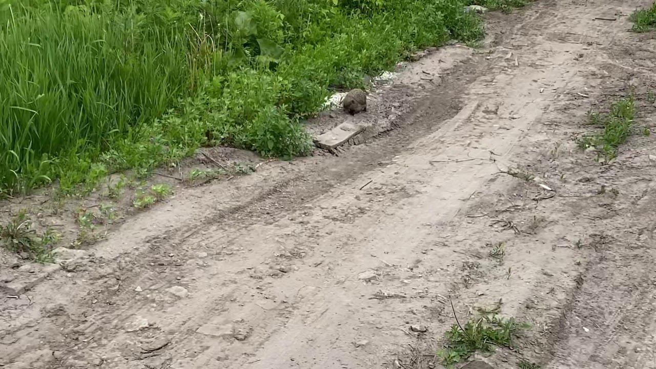 Во время прогулки на даче встретили ёжика, такой прикольный