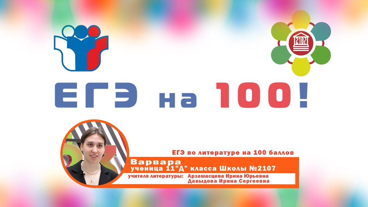 ЕГЭ на 100! / Варвара - ученица 11"Д" класса Школы №2107 / 100 баллов по литературе