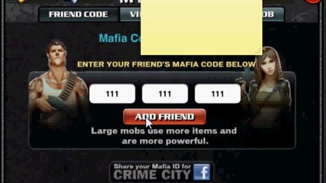 This will allow you to increase your Mafia in Crime City by only having to type 111111111 and press enter. This is so much easier than copy and pasting, or hand typing every invite code. Follow instructions here: http://bit.ly/wDE5FJ ----------UPDATE-------------- Follow up video here: http://youtu.be/gIcCwqxBcRI