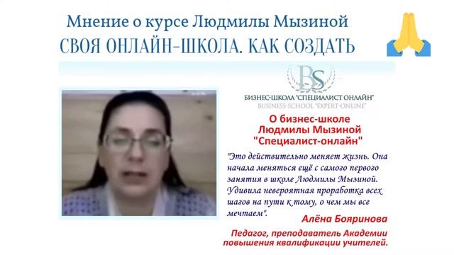 Педагог - Алёна Бояринова о бизнес-школе Людмилы Мызиной