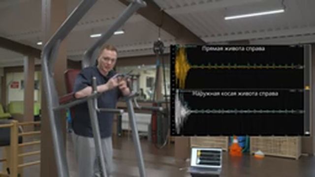 Тренировка пресса на брусьях. Миограф