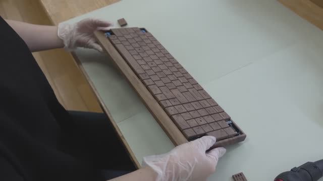 Процесс изготовления деревянной клавиатуры стоимостью 100 000 йен.