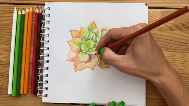 Рисунок цветными карандашами "Суккулент" | Поэтапная срисовка для начинающих