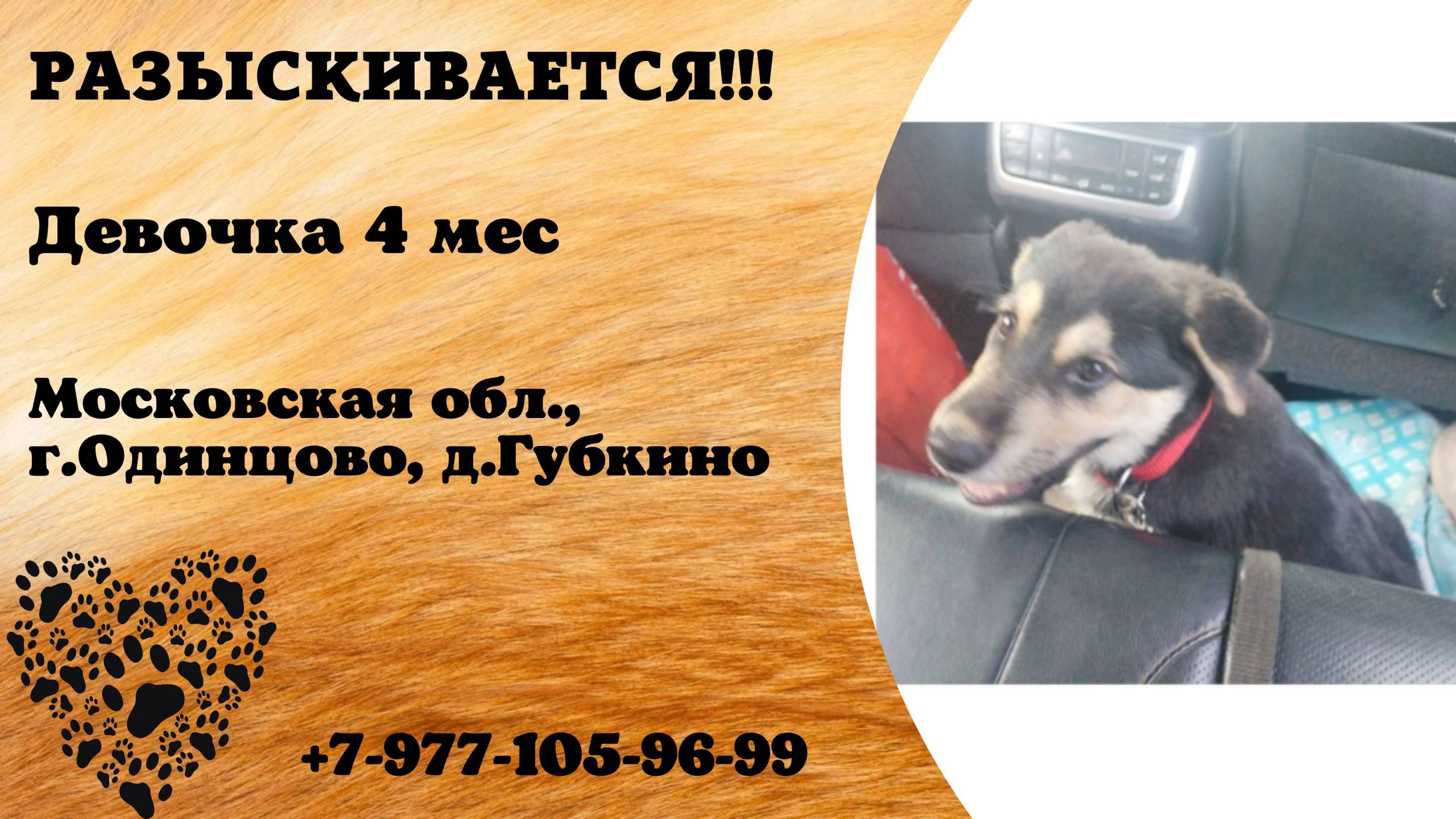 Пропала собака! Девочка. 5 месяцев. Московская обл, г. Одинцово, д. Губкино(1)