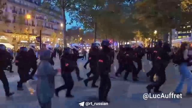 Парижская полиция жёстко разгоняет участников акции в поддержку Палестины с водомётами и слезоточив