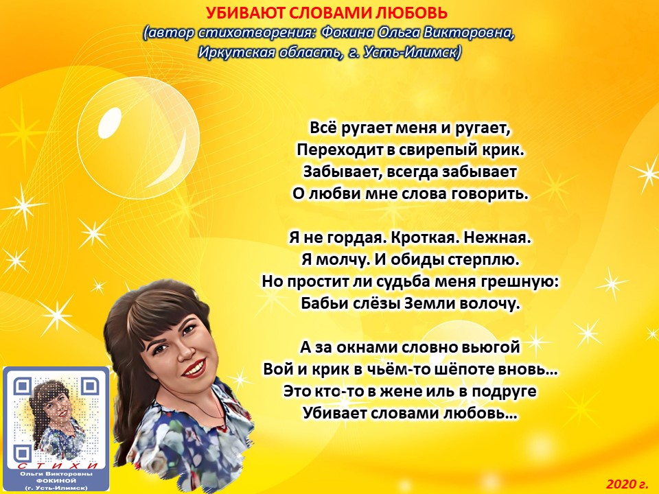 Ольга Фокина (Усть-Илимск) - УБИВАЮТ СЛОВАМИ ЛЮБОВЬ