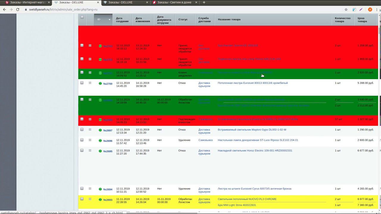 раскраска заказов