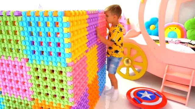 Диана и Рома - Диана и Рома играют с конструктором и строят игровые домики
