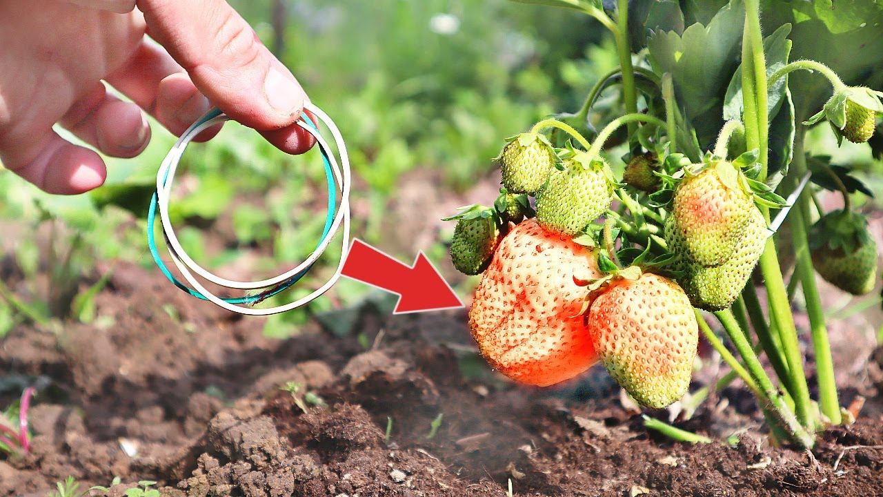 Хитрый способ утроить урожай клубники во время краснения ягод! Резинки для клубники от слизней.
