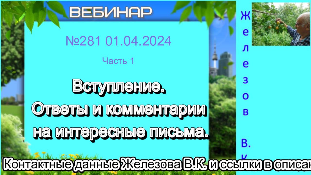 Железов Валерий. Вебинар 281. ч.1. Вступление. Ответы и комментарии на интересные письма.