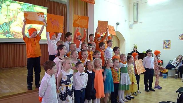 ГБОУ Школа " 1454 "ЦО Тимирязевский" ШО "Астрадамское".Концерт, посвященный Международному женскому дню 8 марта. "Оранжевую песенку" исполняет 1 "В" класс